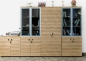 Кабинет Rotonda — воплощение стиля и надежности. Современный дизайн кабинета в сочетании с классическим натуральным цветом дерева придаст деловой вид вашему офису. Широкий выбор шкафов и несколько вариантов столов переговоров делают этот кабинет универсальным. Функциональное решение для офиса включает несколько размеров письменных столов, систему хранения и систему столов для переговоров.