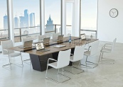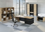 Кабинет «TRAPEZIO» (ТРАПЕЦИО) имеет уникальный дизайн в сочетании с передовыми технологиями, несомненно обладая всеми главными достоинствами, присущими только итальянской школе мебельных мастеров. Натуральный шпон ореха или дуба, которым облицованы основные элементы коллекции «ТРАПЕЦИО», несет в себе настоящее природное тепло натуральной древесины. Особенно подчеркивается структура древодекора глубоким черным цветом глянцевых элементов, черным стеклом с графическим рисунком и зеркальным пластиком, что однозначно ставит кабинет «ТРАПЕЦИО» на высокий премиальный уровень. Минимализм, строгие точные формы и пропорции прекрасно сочетаются со смелым и оригинальным дизайнерским решением. Кабинет «ТРАПЕЦИО» - это новый взгляд на стиль «Модерн».