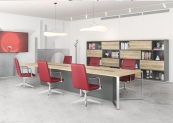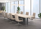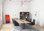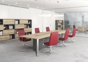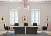 Модульные переговорные столы SPEECH имеют металлические опоры, а благодаря использованию опорных тумб конструкция обладает дополнительной жесткостью и надежностью. Модульная система позволяет скомпоновать переговорный стол необходимого размера и формы. Столы изготовлены из ламинированной ДСтП и имеют специальные декоративные вставки.
